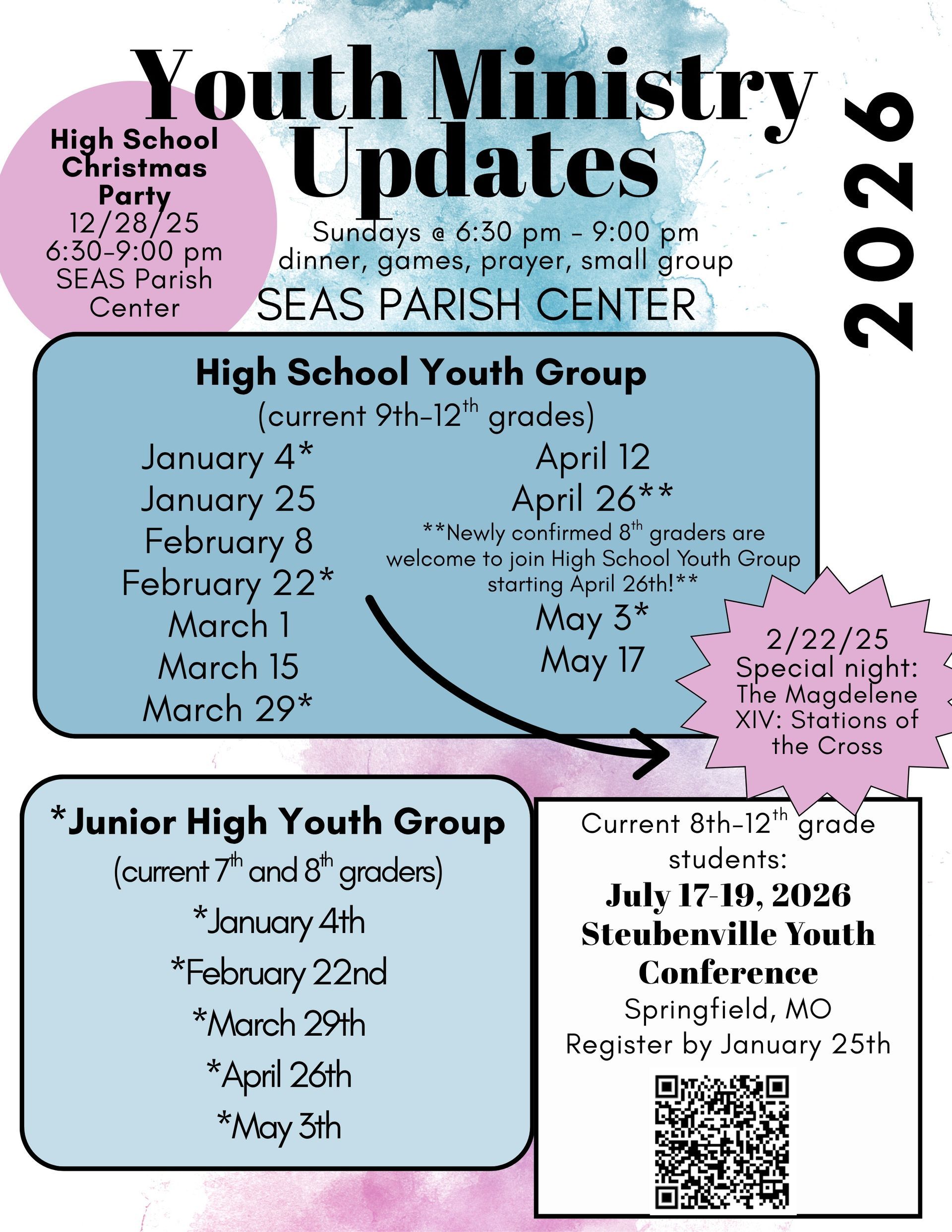 UPCOMING YOUTH MINISTRY EVENTS